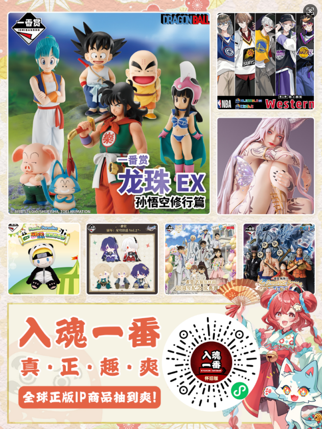 入魂一番,是一家汇聚全球正版雕像、手办、3C、拼装模型、潮玩、玩偶、毛绒、盲盒、扭蛋、轻周边等IP产品或IP联名类产品的互动乐趣抽赏平台,而今年在日本也开设了分公司。玩法涵盖了万代一番赏、B站磁力赏、入魂赏、魂之蛋、团体竞赛等各类抽赏模式,概率透明安全又好玩,将常规购买升级为用户心情消费,让玩家在抽赏的过程中能够获得额外的类游戏的乐趣。