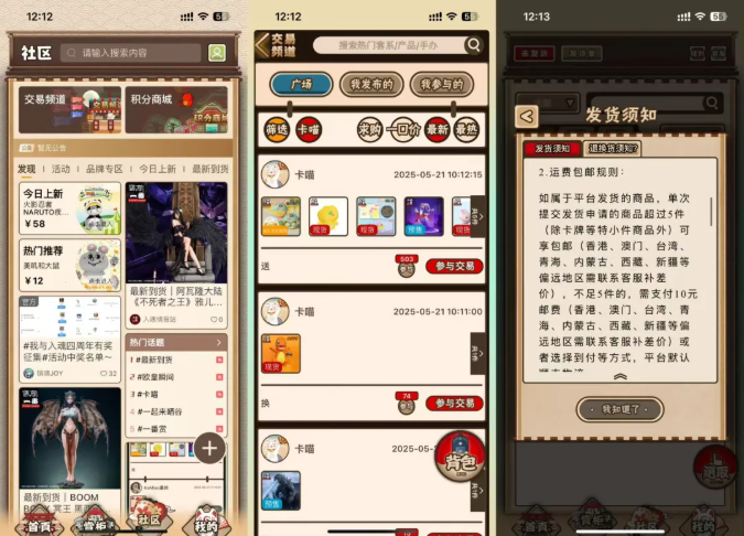 APP自带换换集市,用户可以将抽到后未发货的赏品发布在入魂集市上进行交易,还有官方号每日定期发福利,让玩家可以换到更喜欢的商品。集市中的换换商品也由官方仓库直发,正品、物流全都更有保障!用户单次只要发5件商品即可包邮!万平仓库,真实货源,包装细致,发货及时,保障UP!
